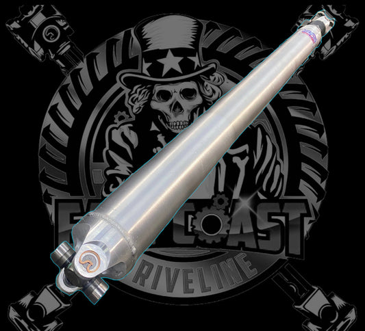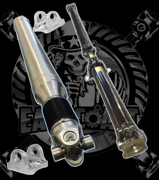 Custom Aluminum Rear Driveshaft with Double Cardan CV Joint at Transfer Case & 4 Bolt Flange Yoke Or Open U-Joint at Rear Differential (High Angle + High HP)