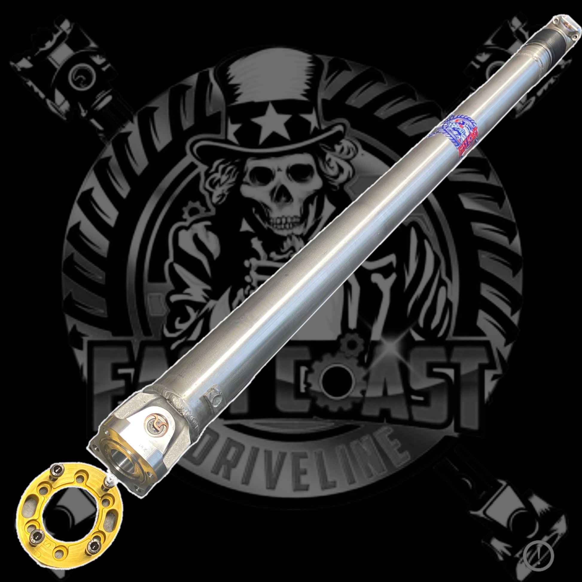 3.5" aluminum single piece driveshaft kit features billet adapters, a quality slip shaft, and super strong solid U-Joints that can take as much power as you can throw at them. Installation is as simple as just bolting it into place.