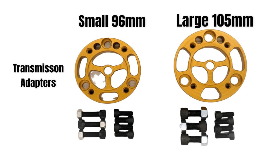 Large: Fits E39 M5 transmissions, 105mm bolt spacing with 14mm fasteners.