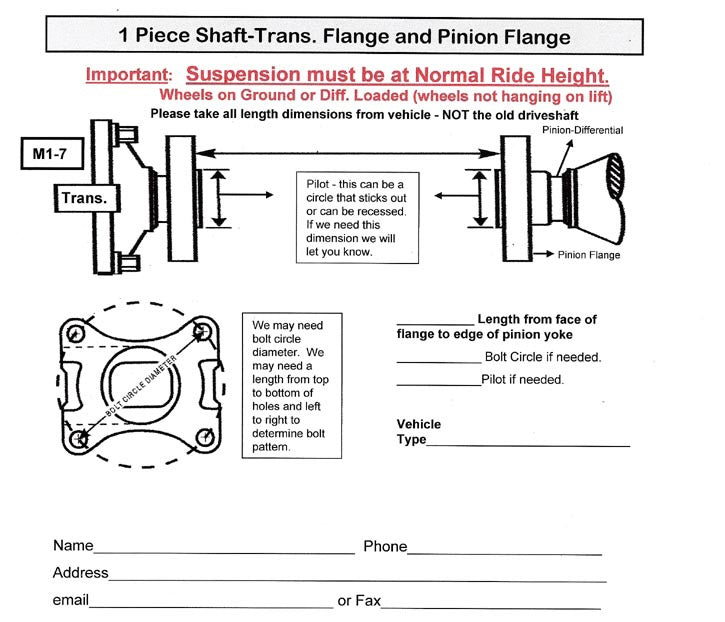*****Must Provide Measurement from the Flat of Trans to the Flat of Differential.******