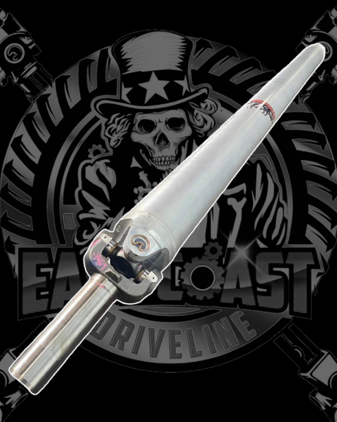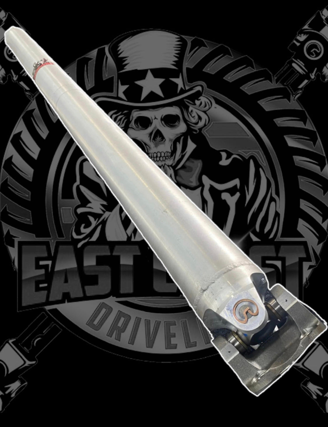 Made with Sonnax 5”x.125” Kaiser Aluminum Tubing and End Yokes. American Axle 1485 Series HD Solid U-Joints, Slip Yoke and Rear Flange.
