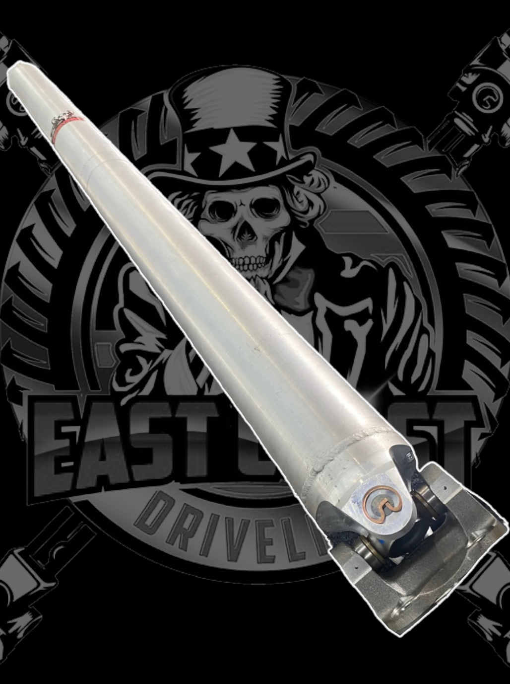 Made with HD 5” x.125” Aluminum Tubing with 1480 Series stock u-joints or bigger 1550 Series Solid U-Joints. Stock driveshaft is 1480 series 2-Piece Steel. New aluminum Driveshaft is half the weight of the stock 2-piece steel driveshaft. Comes with new rear flange and new transfer case slip yoke.