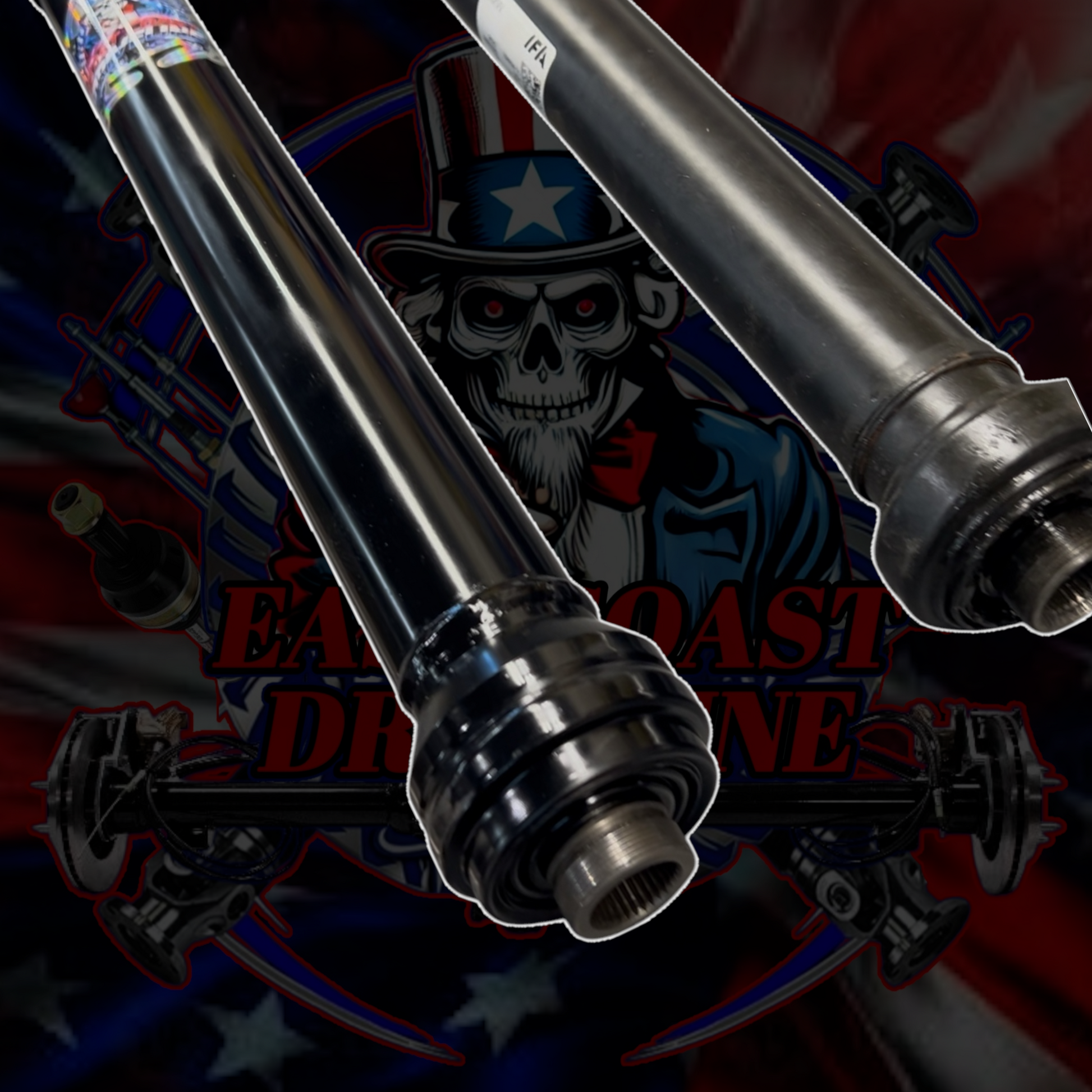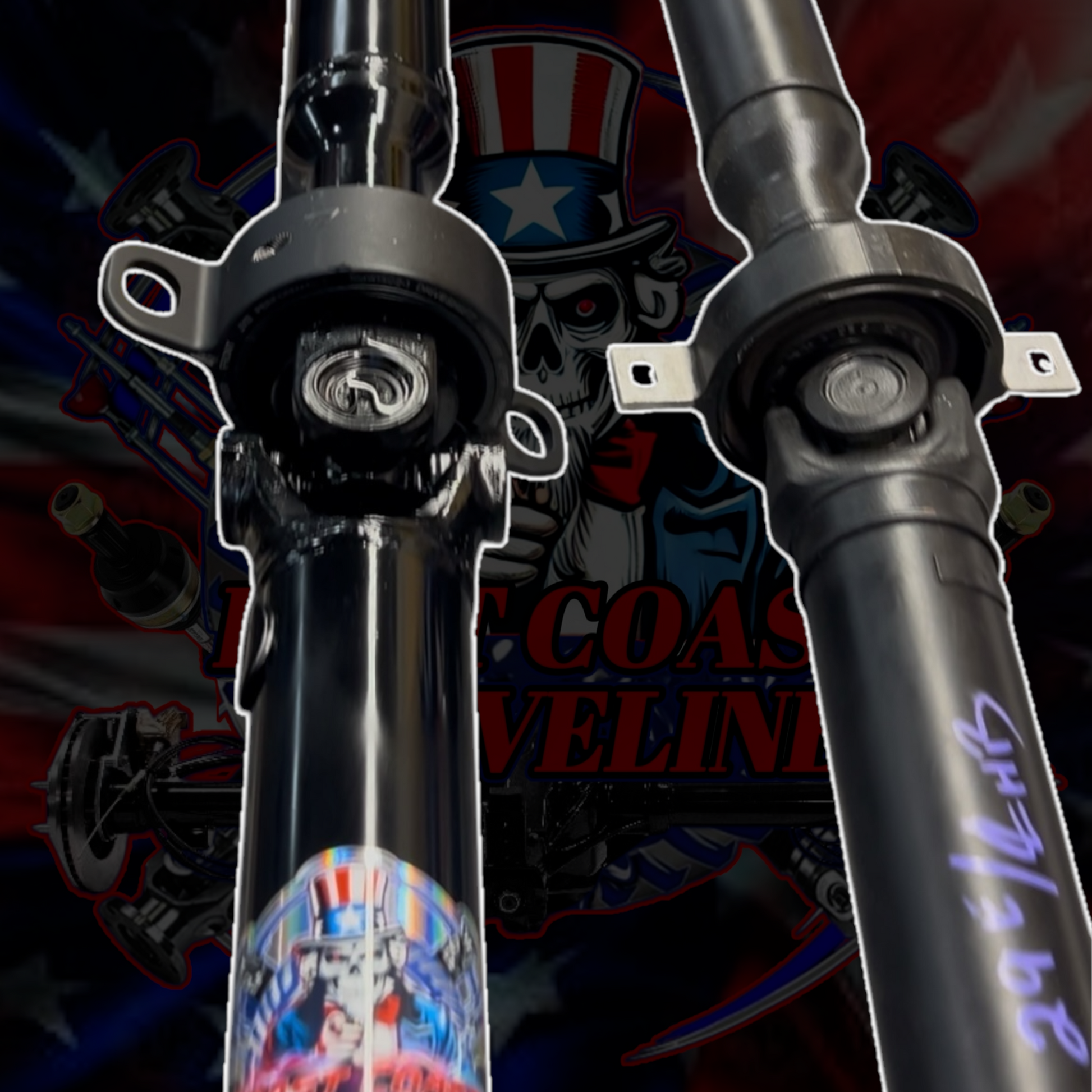 Much Stronger and Flexible Racing Style Driveshaft made to withstand high torque and horsepower. (Gets rid if the weak Rubber Coupler on Transmission, no more hanger bearing, Strengthens and coverts the Rear CVJ to a HD Flange and U-Joint Setup