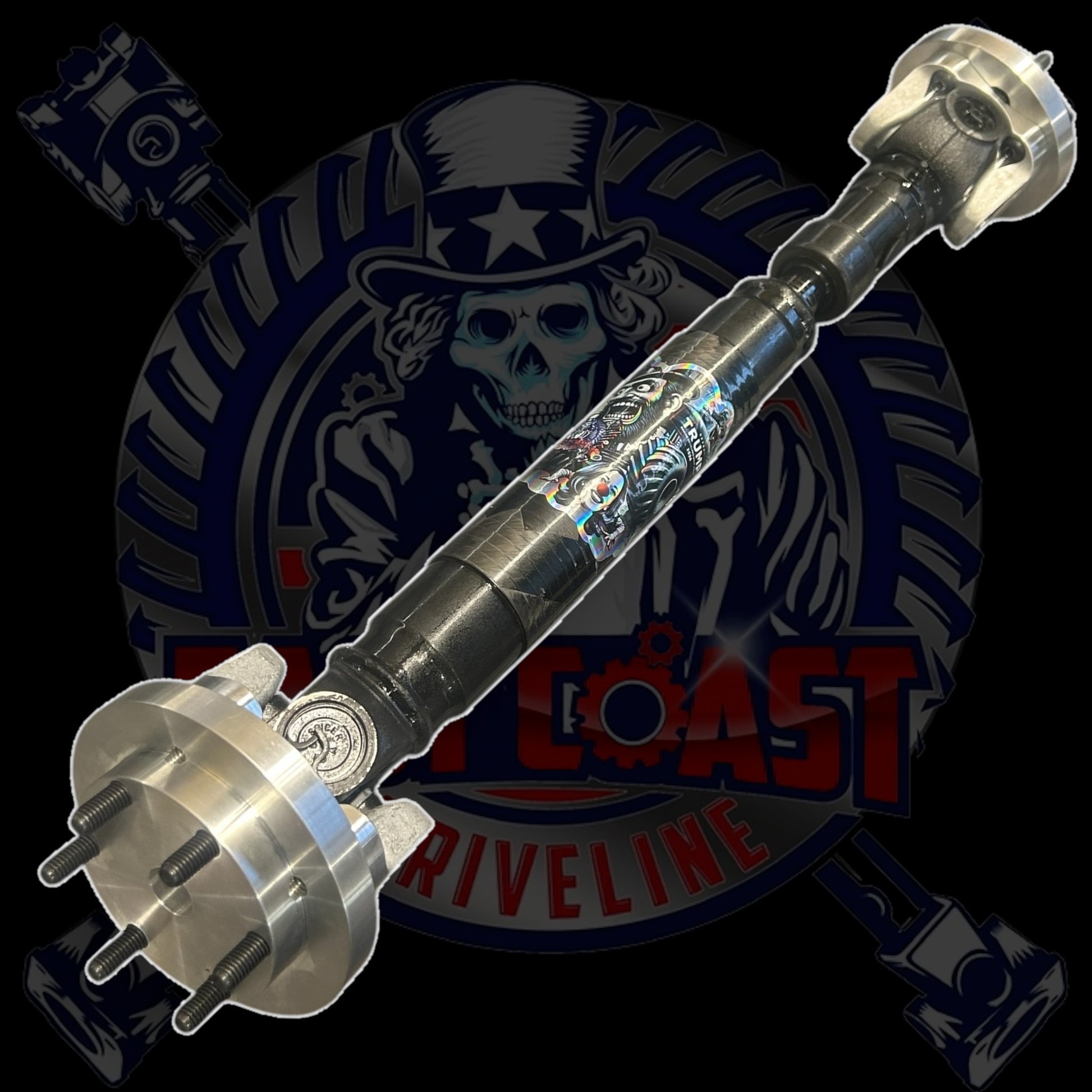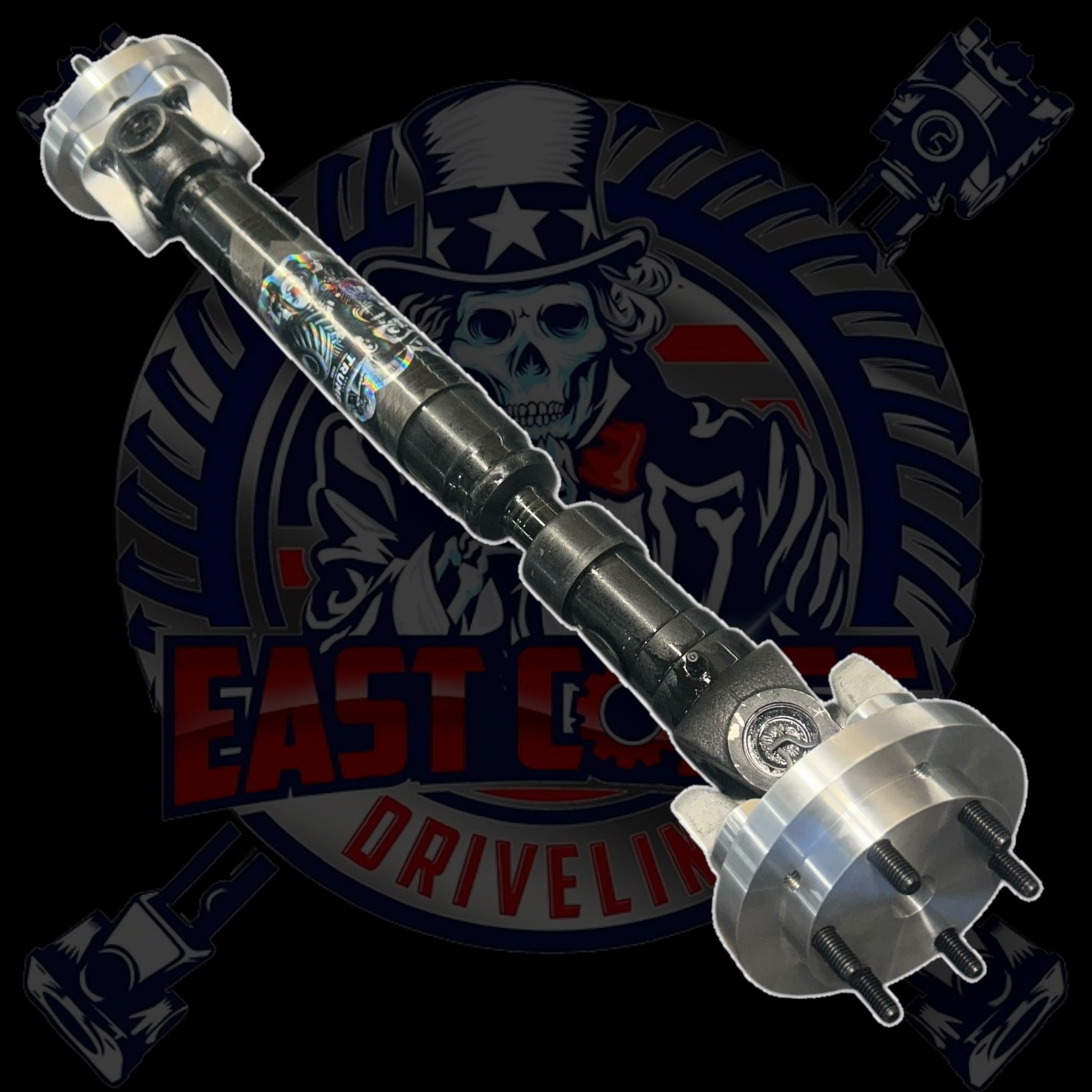 Driveshaft made with HD 3”x.125” Aluminum or 2”x.155” Carbon Fiber Tubing and Direct Mount Forged Steel Flange Yokes