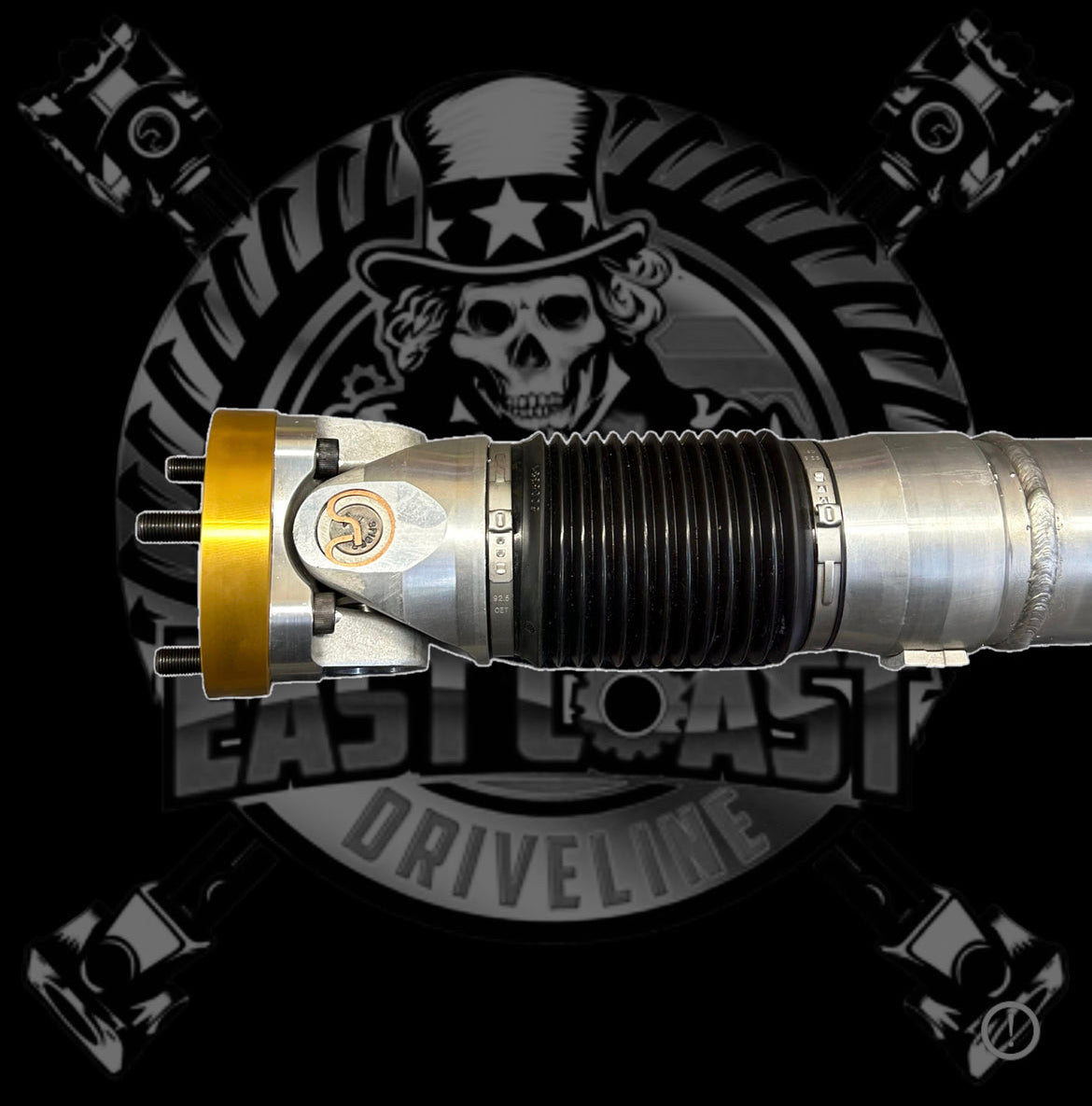 Made in either 3.5”x.125” HD Aluminum or 3.0”x.155” Carbon Fiber (3.31”OD). Both made with Billet Aluminum Transmission Adapter plate and U-Joint Flange Yoke. Rear Custom made Yoke.