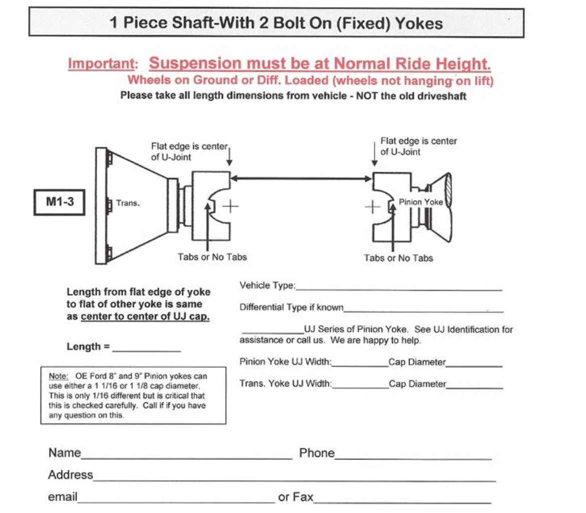 Must Provide Measurement from Center to Center on the u-joints while truck is in riding position
