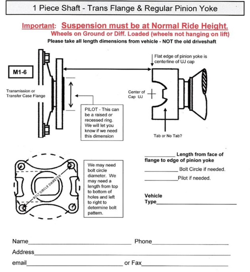 Must Completely Fill out Build Sheet and Email to PB.EastCoastDrivelineInc@Gmail.com