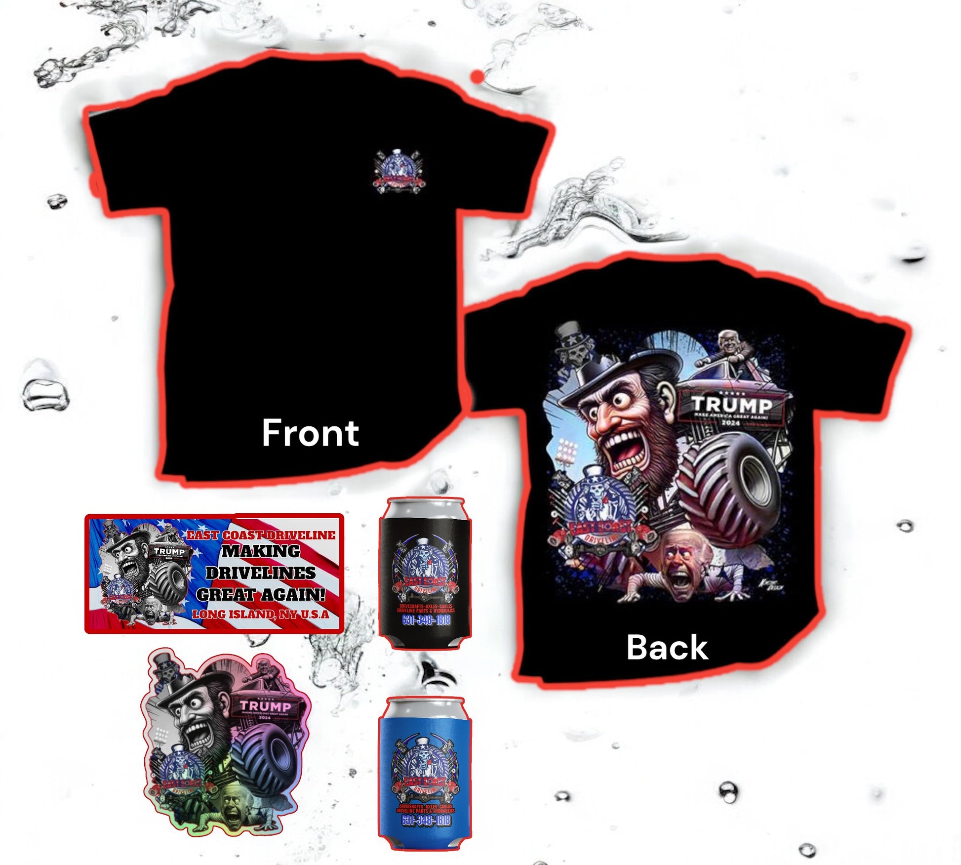 ECD Merchandise PACKAGE- Included 1 T-Shirt, 2 Stickers, and 2 Beer/Soda Coozies