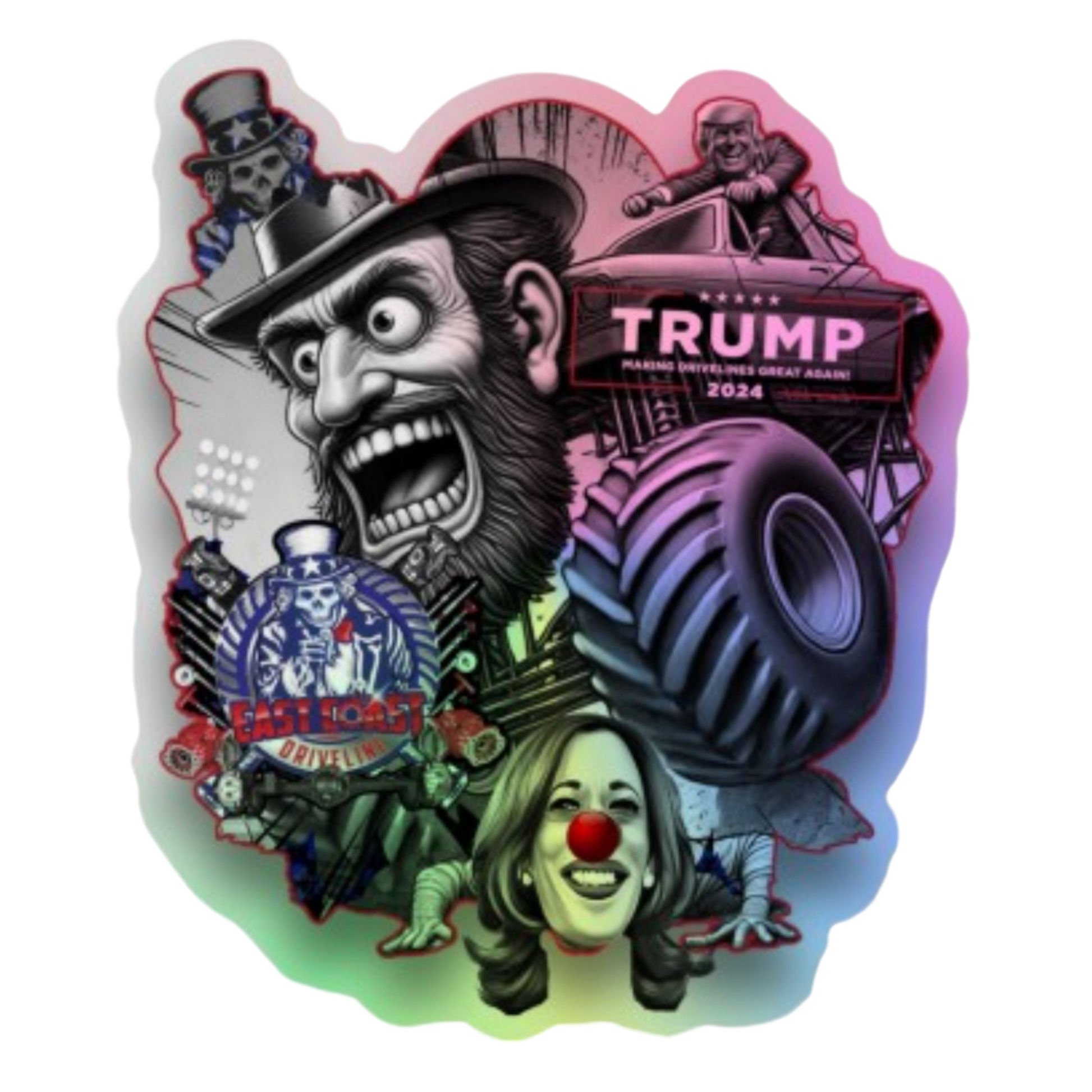Trump Holographic Bumper Sticker- Scamala- “Making Drivelines Great Again”- 4.4”x5” Die Cut Stickers