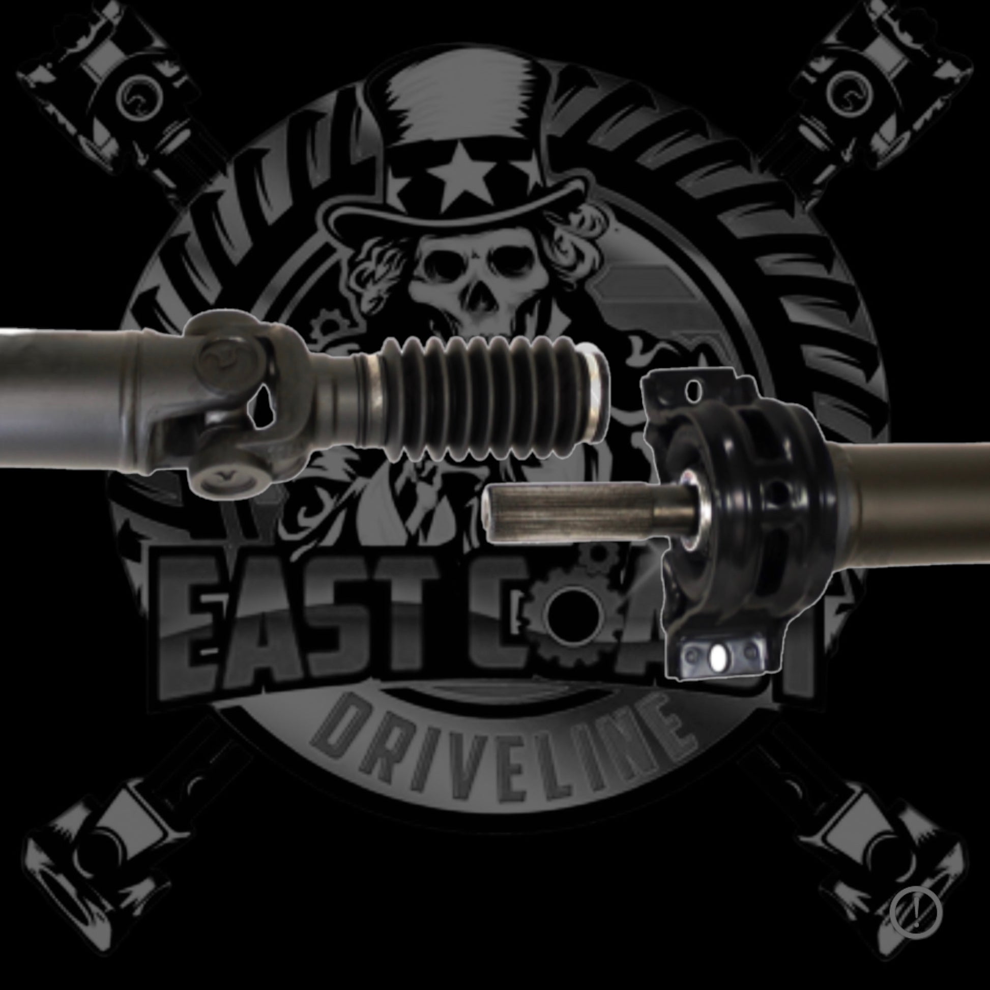 2 Piece Stock Replacement Driveshaft Made with HD 1550 Series Parts, Solid U-Joints, and a Serviceable Hanger Bearing